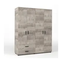 armadio 4 ante e due cassetti. Interna unasta appendiabiti e 4 ripiani. Mmaniglie in metallo e piedini regolabili. Dimensioni 160 x 52 x h 205 cm Colore rovere plat.